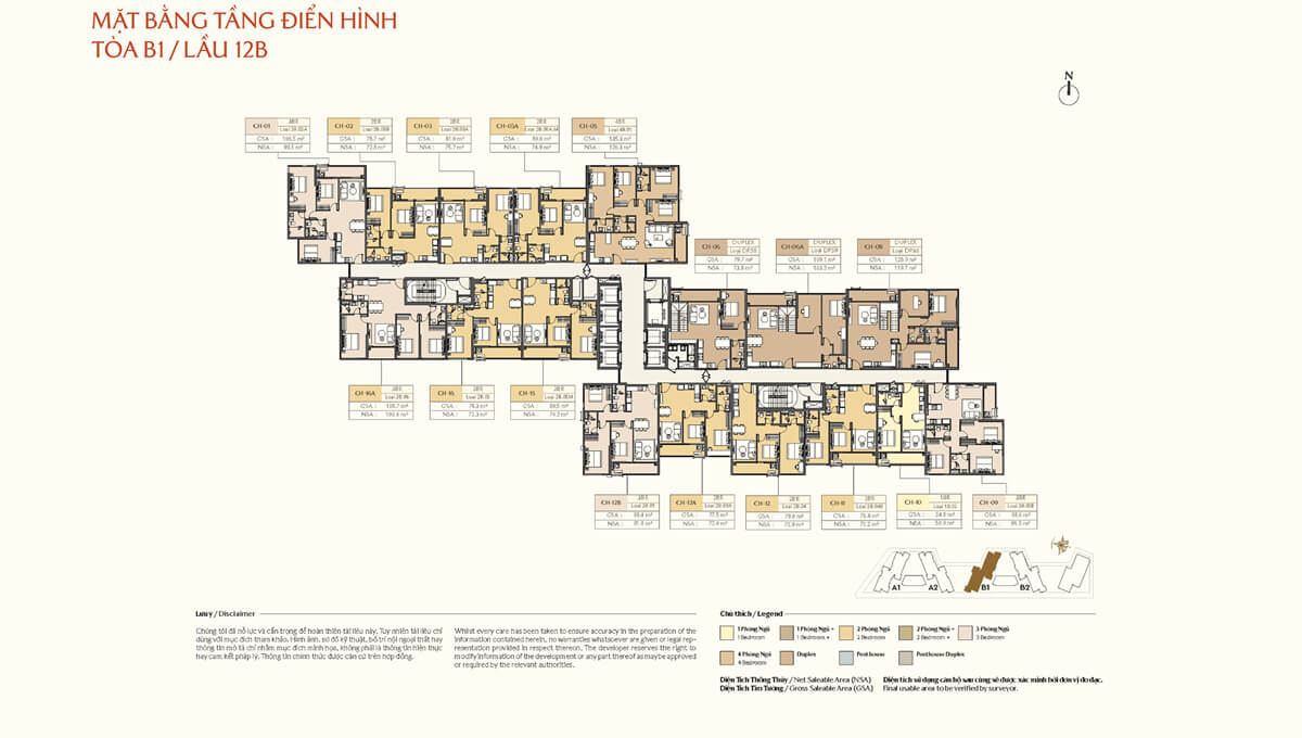 MẶT BẰNG TẦNG ĐIỂN HÌNH TOÀ B1/ LẦU 12B